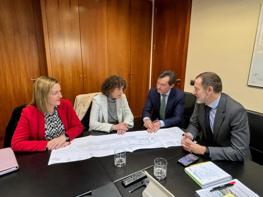 A alcaldesa, Goretti Sanmartín, acompañada pola portavoz do Goberno municipal, Míriam Louzao, mantivo unha xuntanza co presidente de ADIF, Ángel Contreras, e co director xeral, Juan Pablo Villanueva, para coñecer de primeira man o anteproxecto do aparcadoiro da Intermodal de Santiago de Compostela.