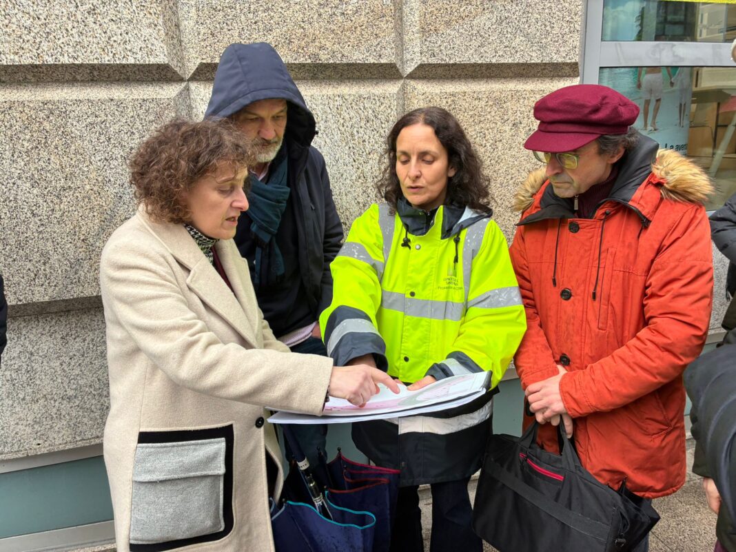 “Trátatase dunha das 17 actuacións que estamos facendo por toda a cidade para mellorar a accesibilidade, para humanizar as rúas e garantir que haxa a accesibilidade universal”, explicou Sanmartín Rei en declaracións aos medios durante a visita a pé de obra, onde intercambiou información cos responsables da obra e cos técnicos do servizo de Obras do Concello. Goretti Sanmartín incidiu na aposta deste goberno por “un modelo urbanístico transformador, sustentable, feminista; un modelo que priorice as persoas que van a pé”.