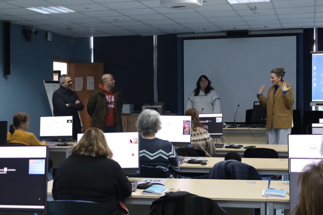 A visita coincidiu cunha das clases da Escola de informática para maiores de 60 anos, na que participan 40 persoas divididas en dous grupos, un de iniciación e outro de nivel intermedio. Tanto o alcalde coma o concelleiro animaron ás persoas participantes a aproveitar a oportunidade de mellorar a súa formación tecnolóxica, cada vez máis importante. Nese sentido, a aula CeMIT é “un espazo clave de innovación, formación e cohesión social”, destacou Daniel Pérez.