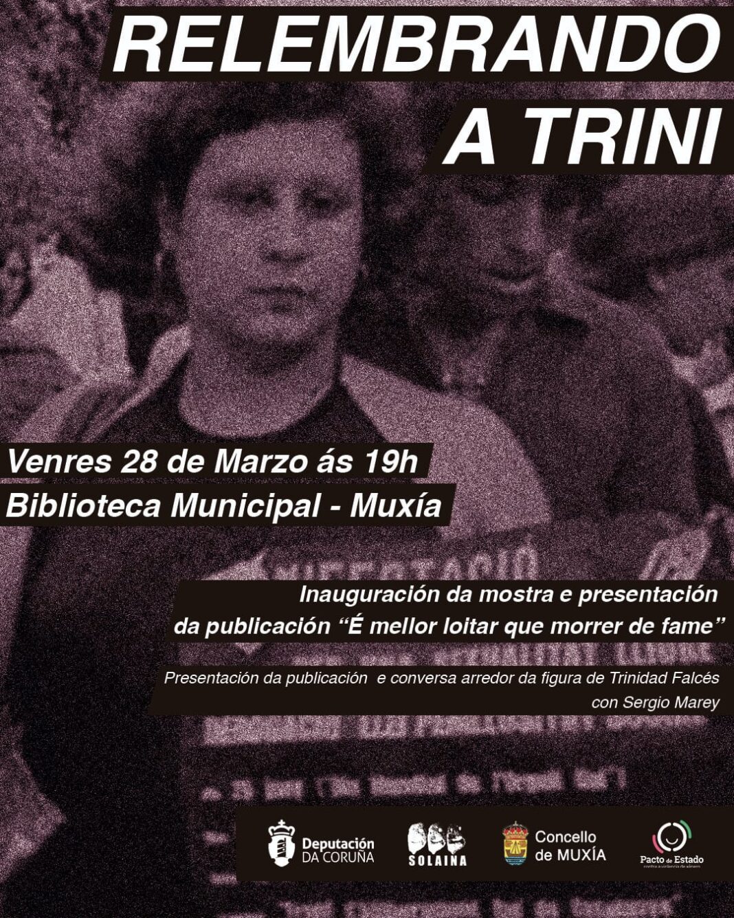 O día da inauguración tamén se presentará o libro sobre a figura de Trinidad Falcés É mellor loitar que morrer de fame, escrito pola propia Sergio Marey, e participará no acto Fito Ferreiro, membro da asociación Palestra e unha das persoas que acompañou a Trini Falcés nos últimos anos.