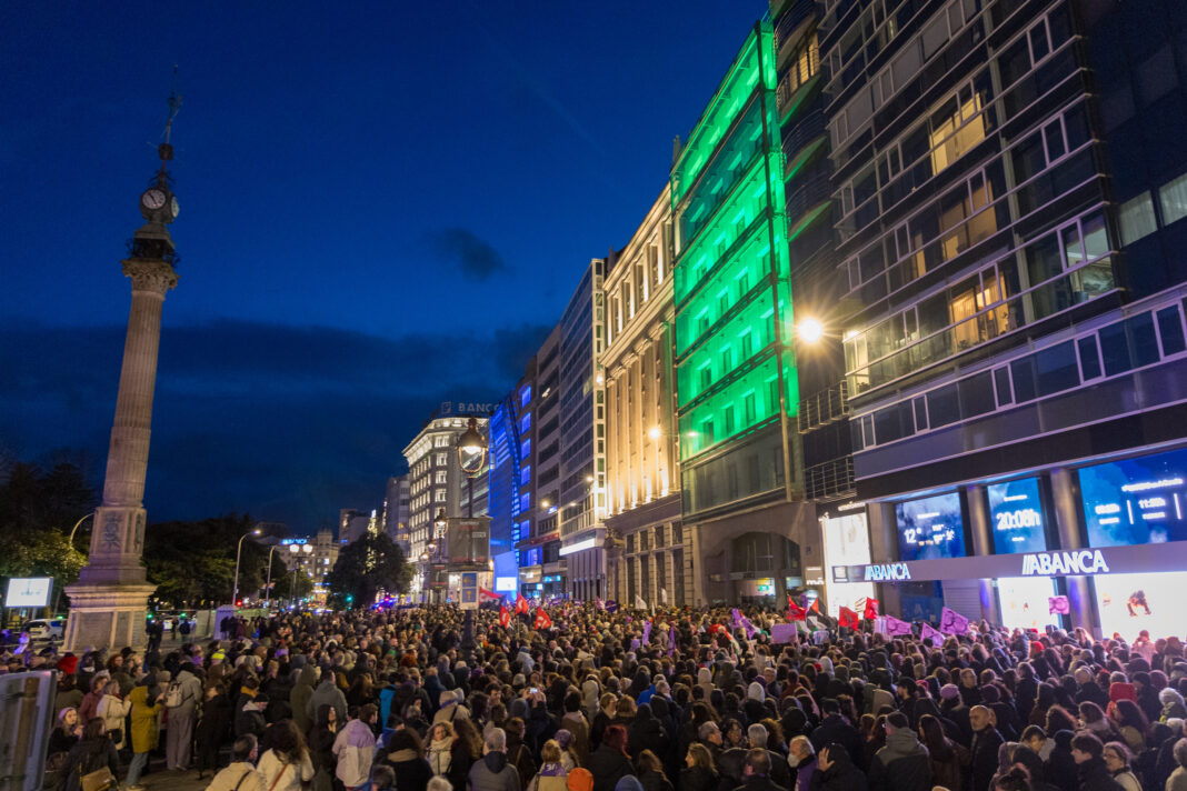 A manifestación partiu ás oito do Obelisco en dirección á praza de Tabacos. Pese á persistente chuvia, máis de 3.000 persoas completaron o percorrido con proclamas a favor da igualdade e contra a violencia machista. “Este 2025 desde o Concello estamos poñendo o foco na visibilización das mulleres como referentes en todos os ámbitos a través da nosa campaña ‘Mulleres liderando o cambio’”, indicou a alcaldesa.