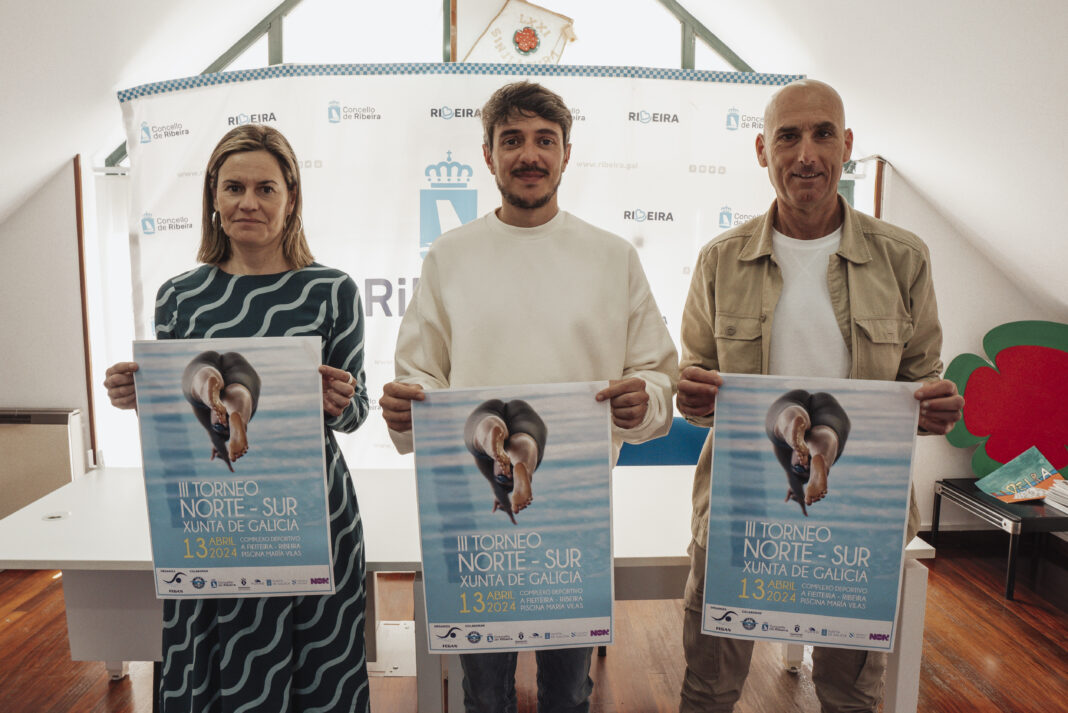 O concelleiro de Deportes, Xabier Vidal, presentou xunto a María Villar, presidenta do Club de Natación de Rieira e Juan Carlos Brión, da Federación Galega de Natación, o Torneo Norte-Sur que se celebrará na piscina de Fieiteira o vindeiro sábado 13.