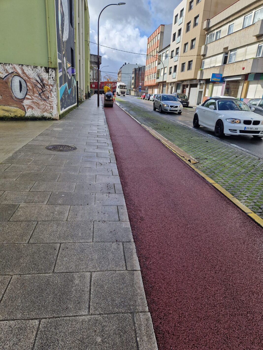 O barrio do Chorís manterá a súa pista vermella, pero agora será de mestura bituminosa en quente do tipo MSR-6. Os servizos técnicos optaron por un pavimento de media densidade, máis resistente que as pranchas plásticas, para evitar o deterioro da senda nas zonas de acceso a garaxes ou empresas, polas que transitan vehículos; pero que ao mesmo tempo reúne unhas características que facilitarán tamén o seu uso por persoas que camiñan ou corren.
