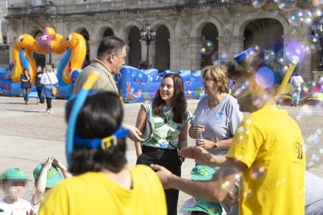 Durante dúas horas, a praza —pechada para a ocasión— acolleu nove espazos lúdicos adaptados á etapa infantil: xogos con paracaídas, percorridos de andadores, bloques de construción xigantes, música, cantaxogos, pompas de xabón, mesas de area e outras propostas pensadas para estimular a creatividade e o movemento.