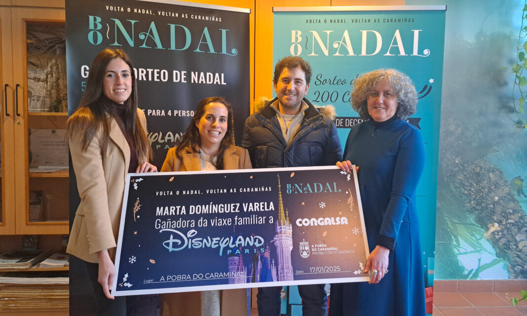 A campaña municipal Volta o Nadal, voltan as Caramiñas finaliza coa entrega da viaxe para catro persoas a Eurodisney patrocinada pola empresa Congalsa. Marta Domínguez converteuse na gañadora do sorteo deste premio que lle permitirá poñer rumbo xunto coa súa familia a este complexo turístico-recreativo e de vacacións situado en París. E, para iso, recibiu o cheque regalo das mans da concelleira da Promoción Económica, Amparo Cerecedo, e da xefa de Relacións Externas de Congalsa, Ana Garrido.