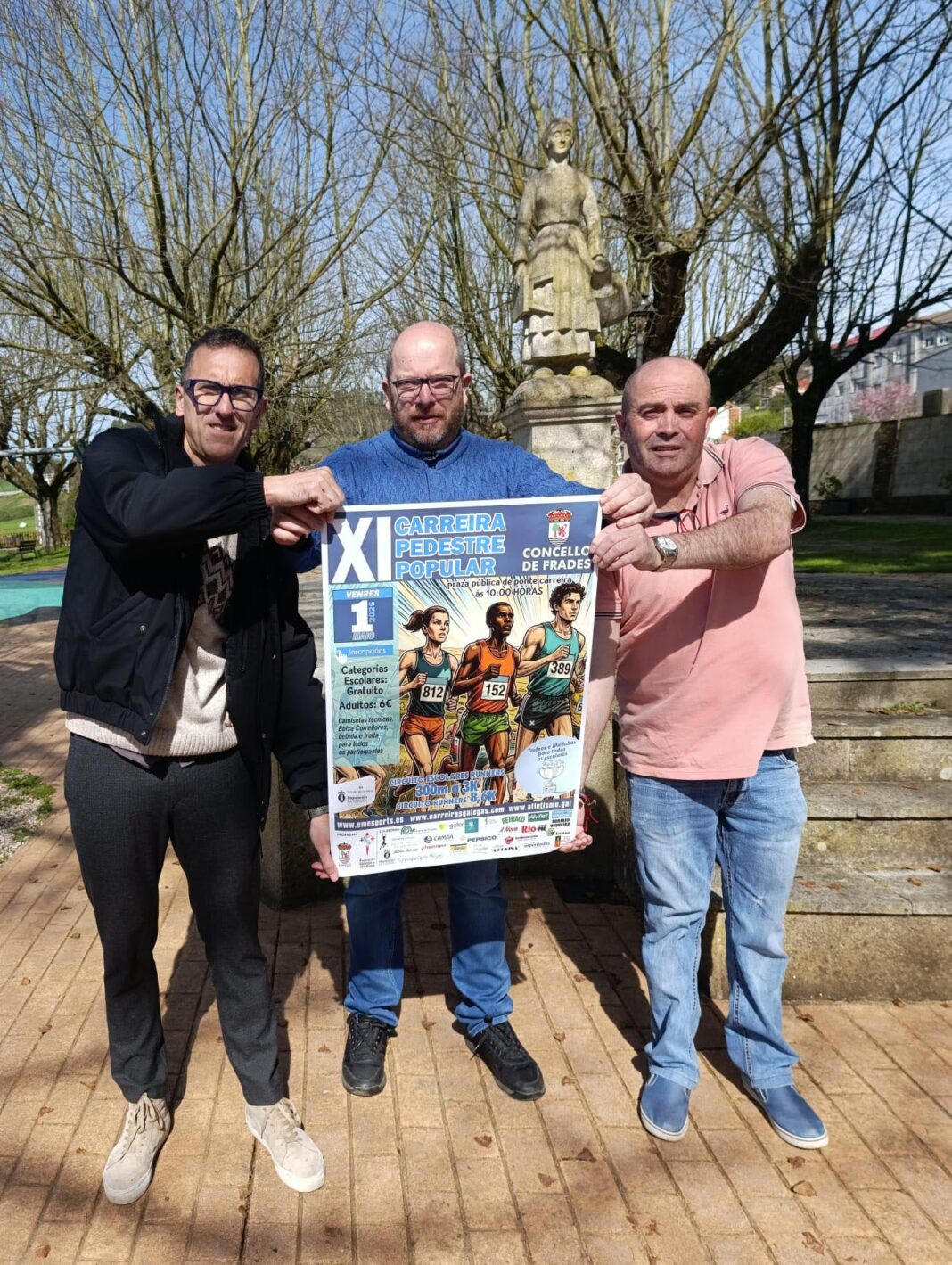 A Carreira Pedestre Popular do Concello de Frades celebrará a súa undécima edición o venres 1 de maio, organizado polo Concello e a Federación Galega de Atletismo. Terá saída e chegada na praza pública de Ponte Carreira e unha lonxitude de 8,6 quilómetros na súa categoría absoluta. As persoas que desexen participar teñen que inscribirse a través da páxina web www.emesports.es antes do mércores 29 de abril.