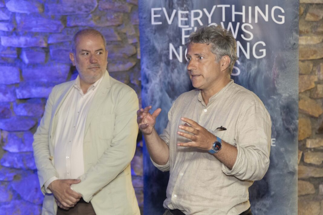 A instalación, comisariada por Hito Cultura & Tecnoloxía, está composta por catro pantallas, situadas nos andares da Torre, nas que se proxectarán paisaxes algorítmicas a partir de datos do movemento do mar e das correntes do aire. O espectáculo visual estará acompañado con audios que evocan o son do océano e crearán deste xeito unha experiencia inmersiva para as persoas que a visiten, e unha invitación á reflexión sobre os ciclos da vida e a relación do ser humano coa natureza. En palabras do artista, ‘Everything flows, nothing dies’ é “un recordatorio de que, se ben as formas e os estados poden cambiar, a esencia permanece”.