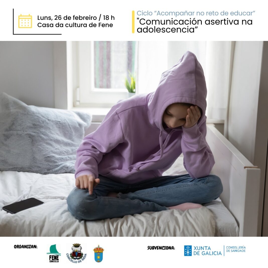 Rapazada que contesta con monosílabos, que mostra pouco ou ningún interese por compartir o que lle pasa e por escoitar o que lle explican os seus proxenitores, actitudes rebeldes… na charla explicaranse estas condutas e outras conductas con casos prácticos, e ofreceranse algunhas estratexias para acadar unha comunicación asertiva.