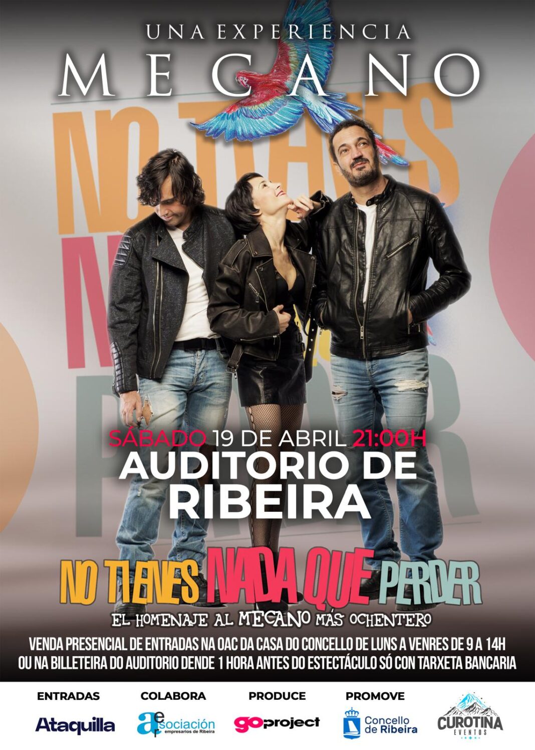 Un tributo a Mecano co nome “Non Tes Nada Que Perder” chegará o vindeiro 19 de abril ao Auditorio Municipal promovido pola concellería de Cultura xunto coa promotora local “A Curotiña” de Ribeira.
