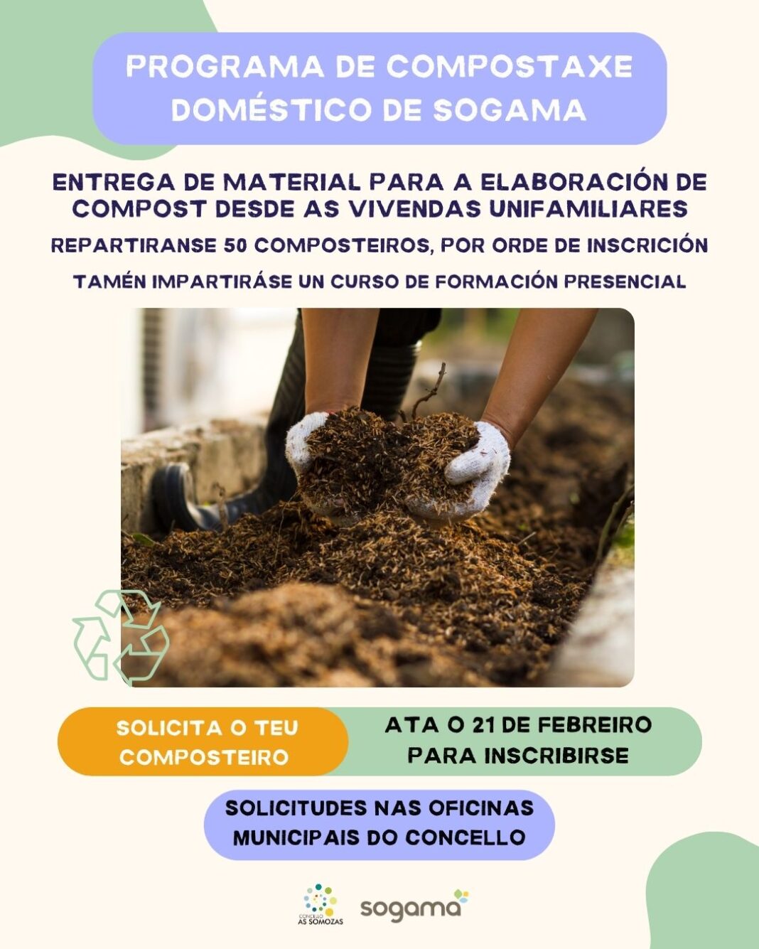 O Concello das Somozas súmase ao Programa de Compostaxe Doméstico impulsado por Sogama e repartirá ata 50 composteiros entre a súa veciñanza.