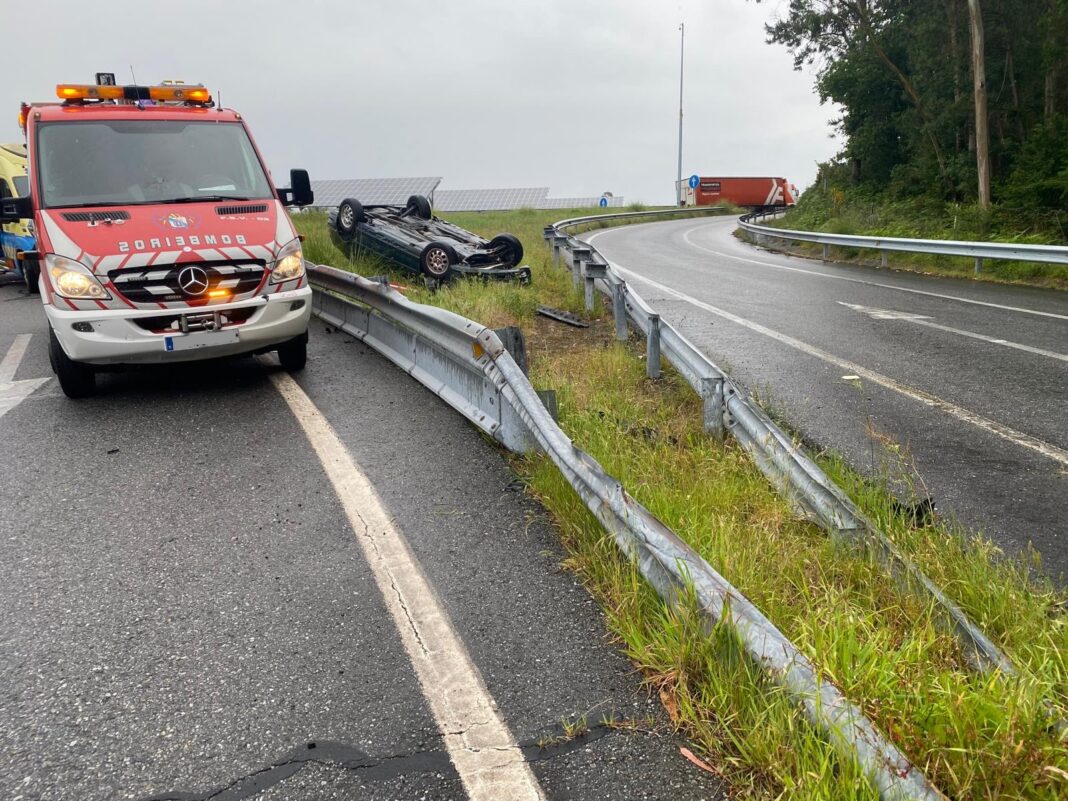 Unha vez no punto, os bombeiros provinciais comprobaron que só había un vehículo implicado e envorcado. A súa labor consistiu en prestar apoio na atención á persoa ferida, que foi finalmente trasladada ao Hospital San Rafael.