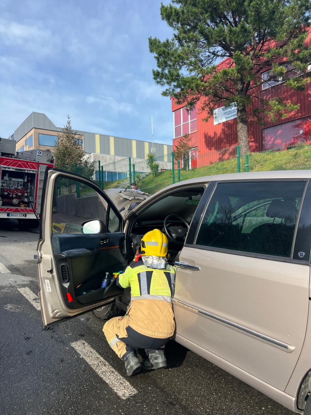 Os bombeiros do parque provincial de Boiro acudiron na tarde de onte, venres 28 de marzo, a sufocar un incendio nun vehículo que se atopaba no arcén xusto diante do parque de bombeiros, na Costa de Espiñeira no Polígono Industrial do mesmo nome.