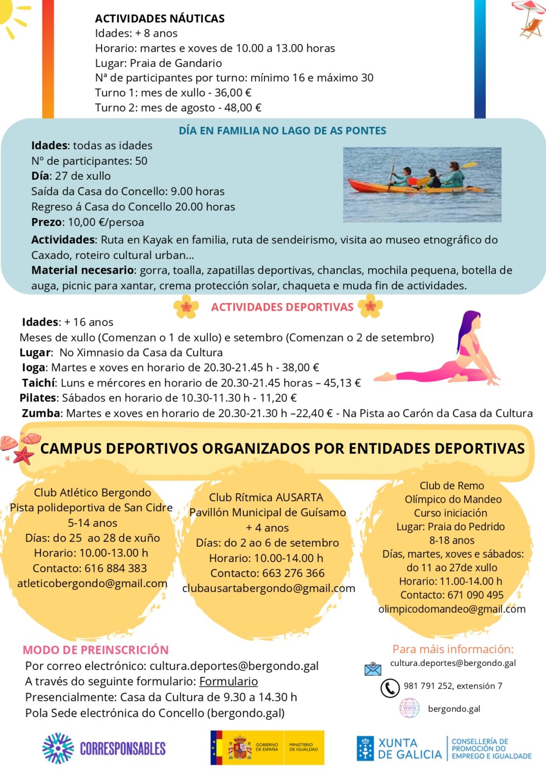 O prazo de preinscrición ábrese este próximo luns, 6 de maio, e permanecerá aberto ata o venres día 10. As persoas interesadas teñen ata catro formas de apuntarse: a través do correo electrónico cultura.deportes@bergondo.gal, a través dun formulario web, presencialmente na Casa dá Cultura de 9:30 a 14:30 horas ou a través da sede electrónica do Concello.