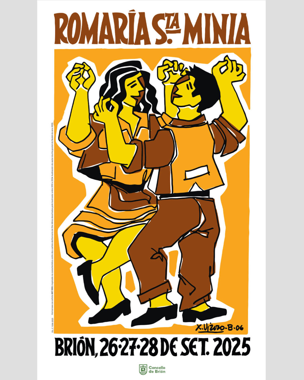 O cartel desta edición será unha merecida homenaxe a Xosé Vizoso (Mondoñedo 1950-Brión 2025) quen fora o artista encargado de ilustrar a Romaría de Santa Minia dende o ano 2010. O Concello de Brión, coa aprobación da familia do artista finado o pasado xaneiro, recuperou unha ilustración creada para unha tarxeta de Nadal de 2006, cunha imaxe potente e festiva moi semellante a outras publicadas por Vizoso para a romaría.
