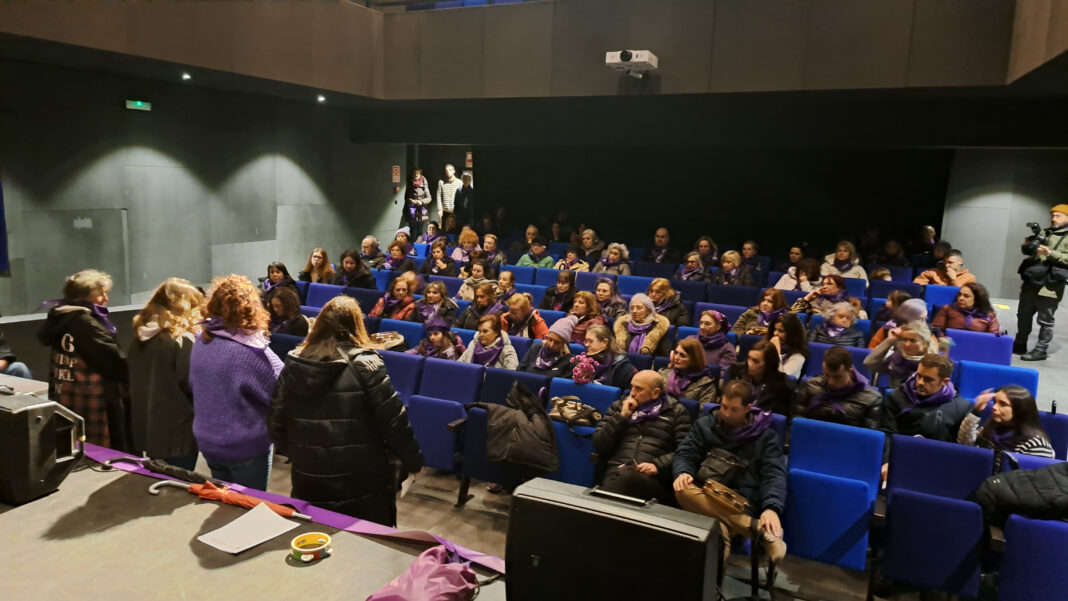 Debido á xornada de chuvia, modificouse o itinerario previsto. Ataviada con panos de cor morada e pasquíns coa xota de Queimadelos con letra adaptada ao contexto social actual, a xente congregada partiu da praza Alcalde Segundo Durán con rumbo ao teatro cine Elma. Alí, a concelleira da Igualdade, Estefanía Ramos, reiterou a importancia de seguir loitando por unha sociedade igualitaria e deu lectura ao manifesto da Federación Española de Municipios e Provincias (FEMP) no que se recolle o compromiso das institucións locais de promove-la igualdade de xénero en tódalas áreas da sociedade. “Recoñecemos que aínda existen desigualdades sistémicas que afectan as mulleres nas nosas comunidades e comprometémonos a abordalas de maneira máis activa e efectiva, tendo especial sensibilidade con aquelas mulleres que máis difícil o teñen, como son as mulleres con discapacidade, mulleres migrantes, mulleres de diferentes etnias e mulleres que viven no medio rural. Non se pode progresar sen a metade da poboación, que son as mulleres, nin á conta delas”, apuntou.