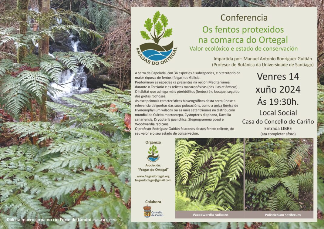O local social do Concello de Cariño este venres, 14 de xuño, a partir das 19:30 horas, a conferencia sobre a Serra dá Capelada ‘Vos fentos protexidos na comarca do Ortegal’, que versará sobre o valor ecolóxico e o estado de conservación deste ecosistema.