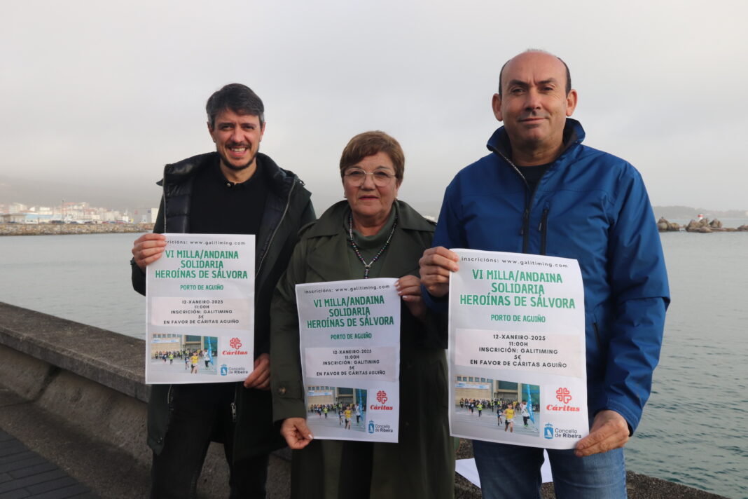 Hoxe congregáronse no paseo do Touro o concelleiro de Deportes, Xabier Vidal, o concelleiro de Mar, Fernando Abraldes e a presidenta de Cáritas de Aguiño, Julia Rey para animar a participar á veciñanza nesta andaina solidaria que se celebrará o vindeiro domingo día 12 a partir das 11:00 h no porto de Aguiño.