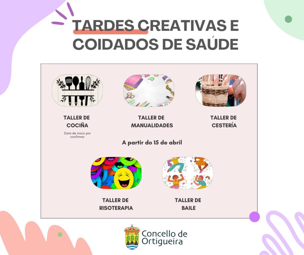 Cociña, manualidades, cestería, risoterapia e baile. Son as propostas do Concello de Ortigueira para as súas ‘Tardes Creativas e Coidados de Saúde’. As actividades arrincarán a partir do próximo luns, 15 de abril, con 18 sesións totais á semana en varias parroquias.