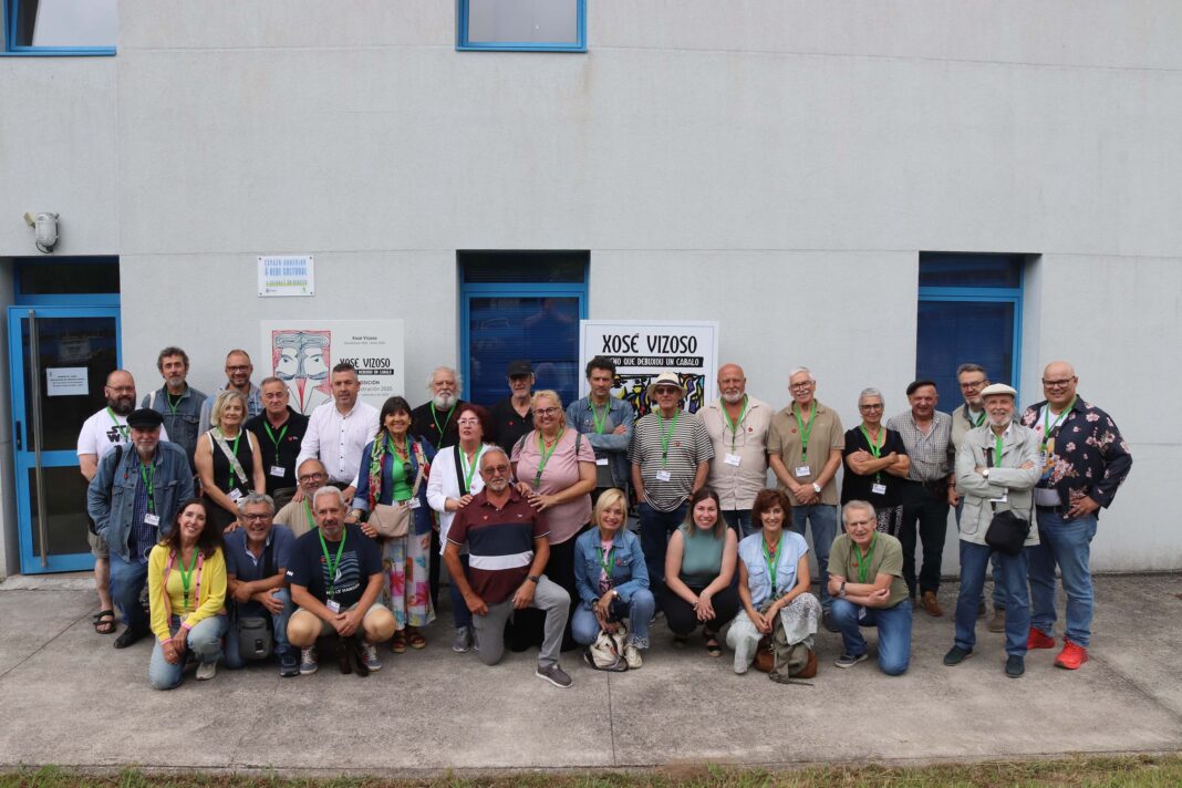O alcalde de Brión, Pablo Lago, e a concelleira de Cultura, Sandy Cebral, acompañados dos 25 prestixiosos artistas de distintos lugares do territorio nacional que participan no XVIII Encontro coa Arte: lembrando a Xosé Vizoso, inauguraron esta maña a exposición “Xosé Vizoso. O neno que debuxou un cabalo”. Trátase dunha mostra homenaxe a este prestixioso artista, organizada co gallo da celebración do Día da Ilustración 2025, que contén 8 paneis informativos e 28 carteis enmarcados de Xosé Vizoso, que poderán visitarse no centro social polivalente de Brión ata o vindeiro 30 de setembro.