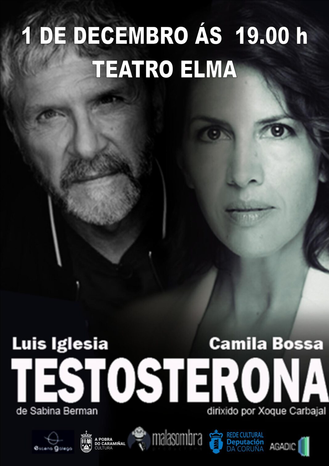 Cinco sesións que chegan ao seu fin coa representación de Testosterona, a cargo de Malasombra Producións. Será no domingo, 1 de decembro, ás 19.00 horas, no teatro cine Elma. Exponse a desigualdade laboral: un home e unha muller optan a un posto de máxima responsabilidade nun medio de comunicación de ámbito nacional e formúlase a pregunta de que factores influirán na decisión.
