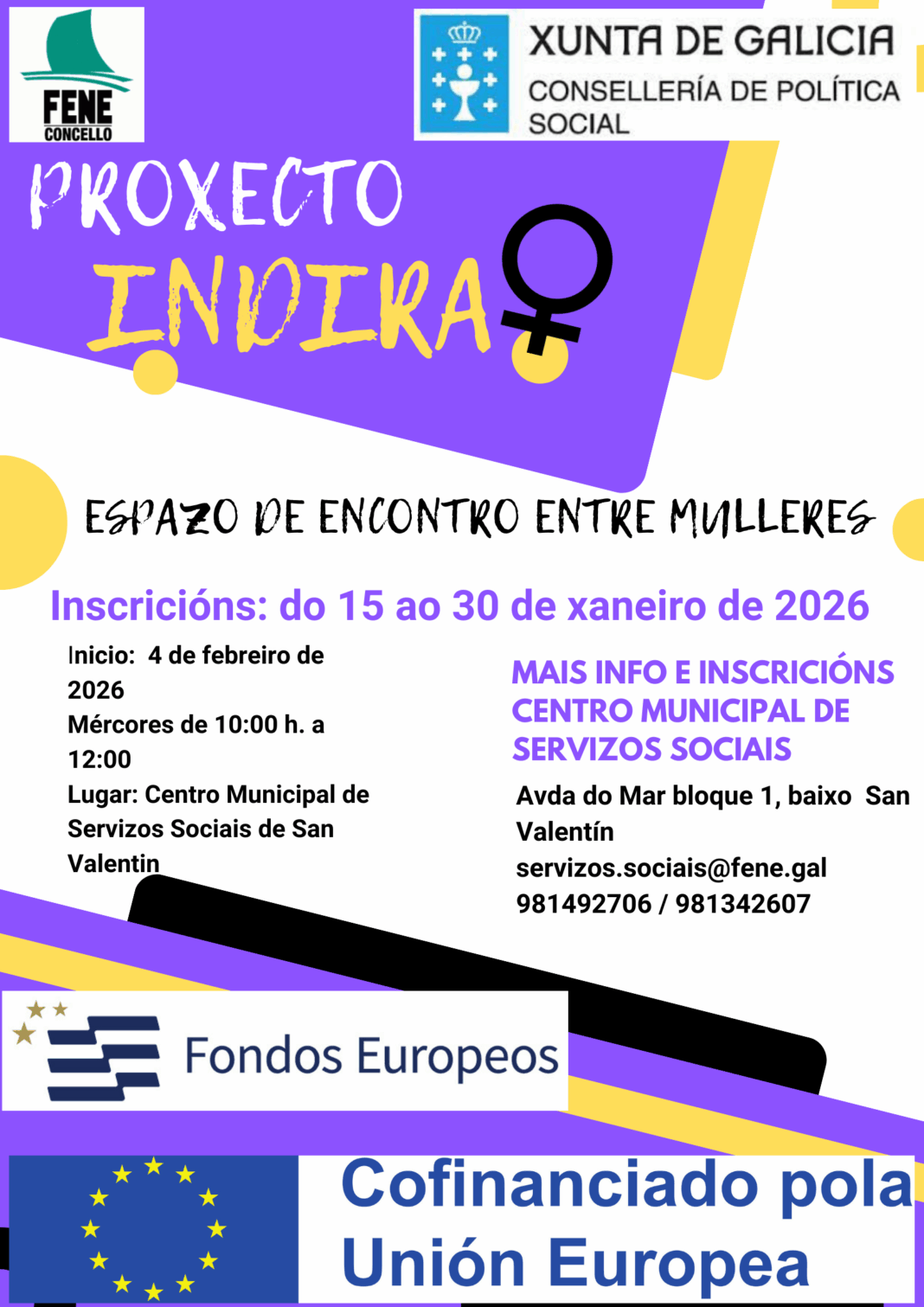 A Concellería de Igualdade do Concello de Fene, a través do Servizo Municipal de Atención á Muller, pon en marcha un novo Espazo para Mulleres enmarcado dentro do denominado Proxecto INDIRA, actividade que se ven desenvolvendo dende o ano 2018 de xeito ininterrompido cun total de dúas edicións por ano.