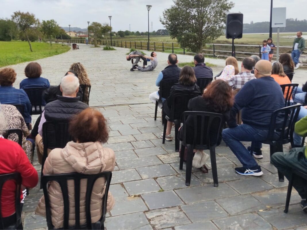 A contorna do albergue de peregrinos, ao pé da ría, converteuse en escenario de excepción para gozar dunha tarde máxica, na que brillou o colectivo Glovo co seu “Alleo”, sorprendeu Raquel Ferradás con “Mesura”, e chegou ao corazón o Colectivo DeXeito con “77.000”, a súa recreación da catástrofe do Prestige. Todo un tributo ao voluntariado que limpou as costas galegas. Tres propostas ben diferentes que trunfaron nunha cita cultural chea de plasticidade e de emocións.