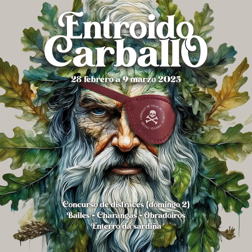 Un ano máis Carballo vestirá o disfrace do Entroido con multitude de actividades entre o 28 de febreiro e o 9 de marzo: espectáculos de rúa, festas, desfiles, bailes, obradoiros, pasarrúas… E tres citas que cada ano congregan a miles de persoas: o Concurso e Desfile de Disfraces, Comparsas e Carrozas, a Festa Infantil de Entroido e o Enterro da Sardiña. Este ano, o cartel, realizado polo carballés Juan Gende, está inspirado no carballo senlleiro de Vilar de Francos, que perdeu a última parte da copa durante o temporal Brent en novembro de 2024.