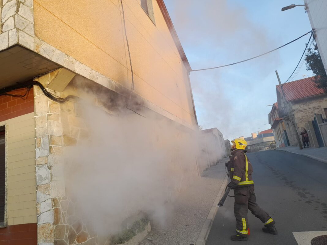 Os bombeiros do parque Provincial de Ribeira foron alertados na mañá de hoxe, 26 de febreiro, dun incendio de cables eléctricos nunha fachada nunha vivenda en Aguiño, no concello de Ribeira.