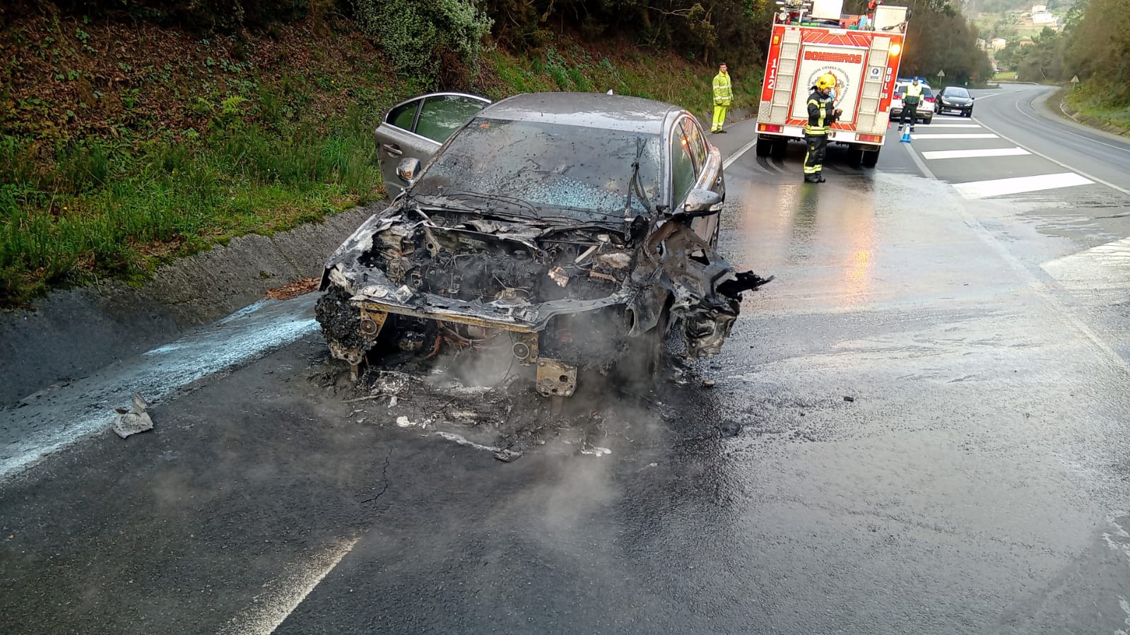 Os bombeiros do Parque Provincial de Ordes foron requiridos a primeira hora da tarde de onte, 18 de novembro, nun operativo destinado á extinción dun incendio nun vehículo na estrada AC-523, á altura do punto quilométrico 11.5, no concello de Ordes.