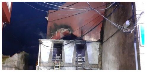 Os bombeiros do parque Provincial de Carballo acudiron a sufocar un incendio nunha casa abandonada na rúa Ventorrillo, no Concello de Malpica de Bergantiños.