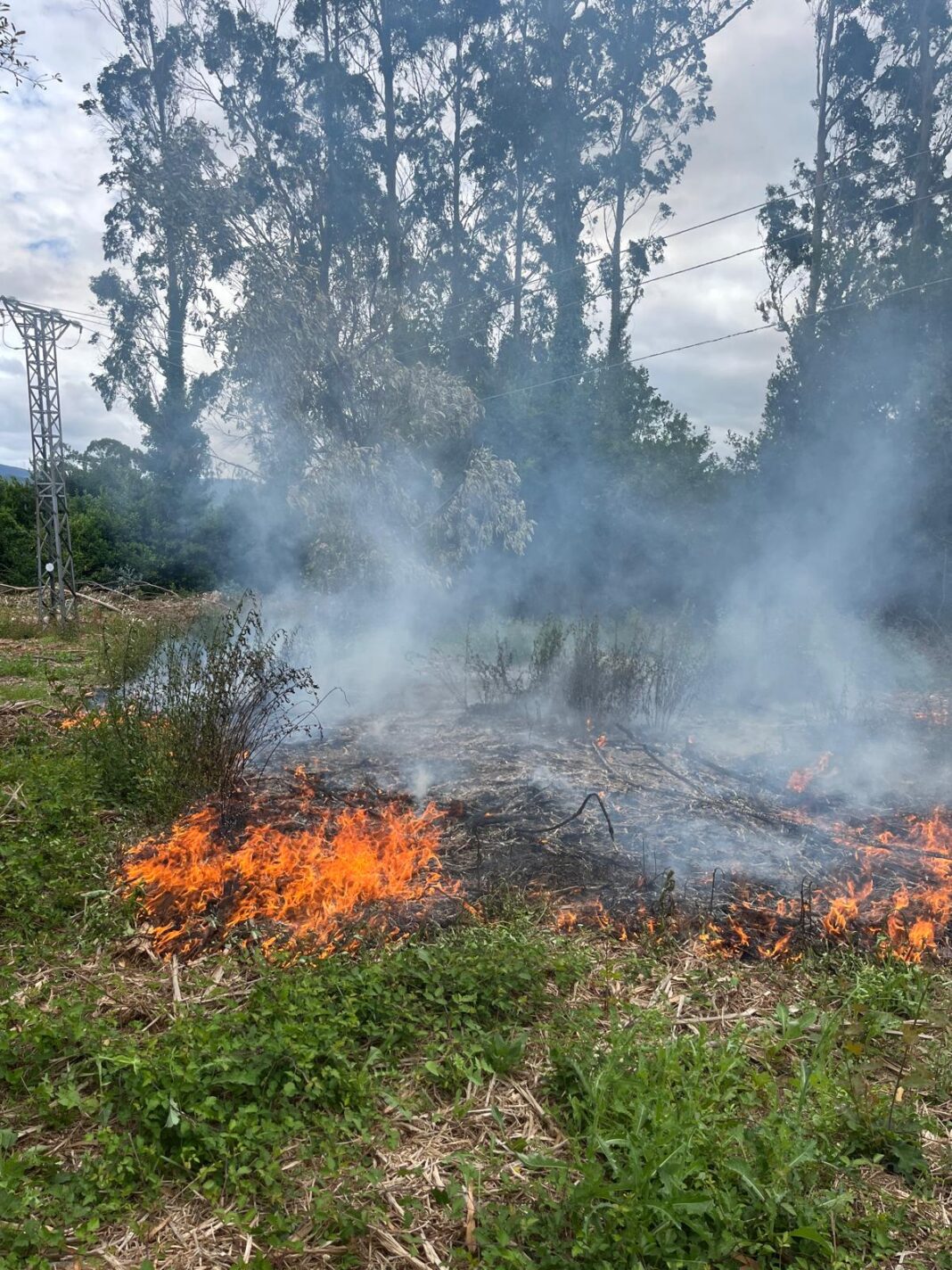 A súa chegada observaron a existencia dun eucalipto caído sobre o tendido de alta tensión, provocando un conato de incendio forestal baixo a liña eléctrica.
