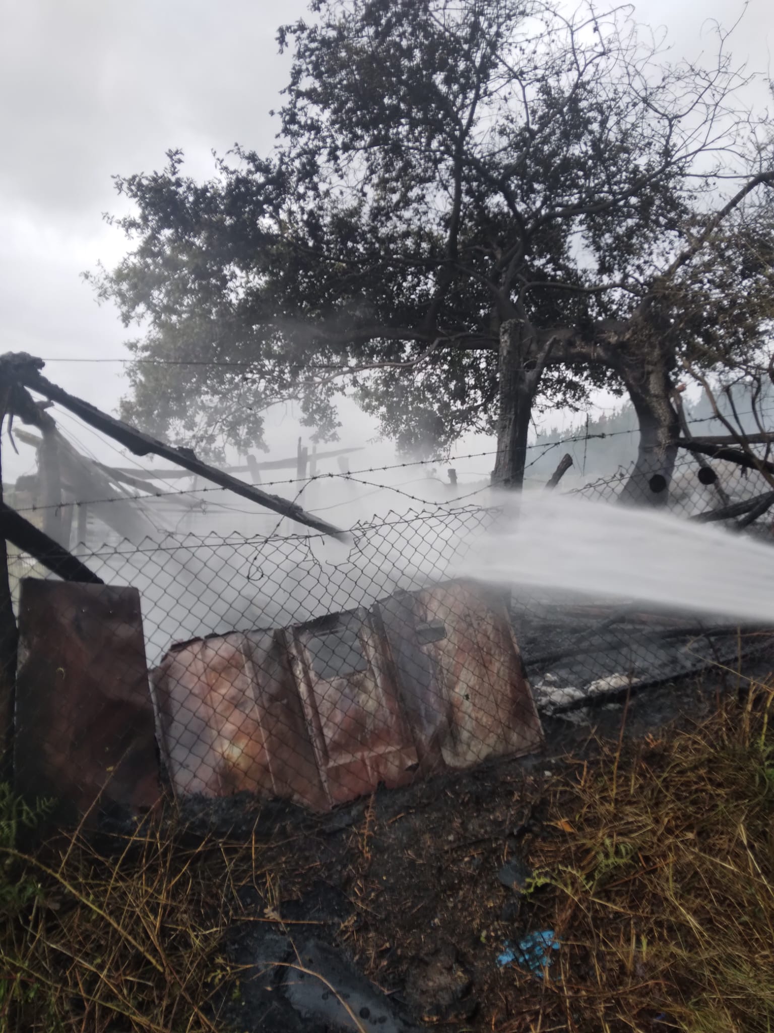 Os bombeiros do parque Provincial de Arzúa foron alertados ás 17:35 horas desta tarde dun incendio que afectou ao alpendre dunha finca situado no Concello de Touro.
