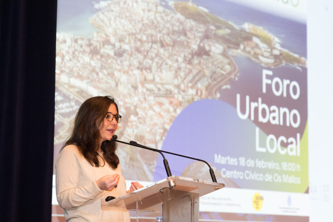 A alcaldesa da Coruña, Inés Rey, destacou hoxe no Foro Urbano da Axenda Urbana 2030 que a nova Estación Intermodal é un claro exemplo da segunda modernización da Coruña. No evento, celebrado no Centro Cívico de Os Mallos, presentou os avances na Axenda Urbana así como proxectos en marcha para a contorna da Estación Intermodal, especialmente nos barrios lindeiros: “Estamos a falar dunha transformación que permitirá integrar mellor Os Mallos e Sagrada Familia coa nova realidade intermodal e co resto da cidade, xerando novas oportunidades para estes barrios”, sinalou Rey.