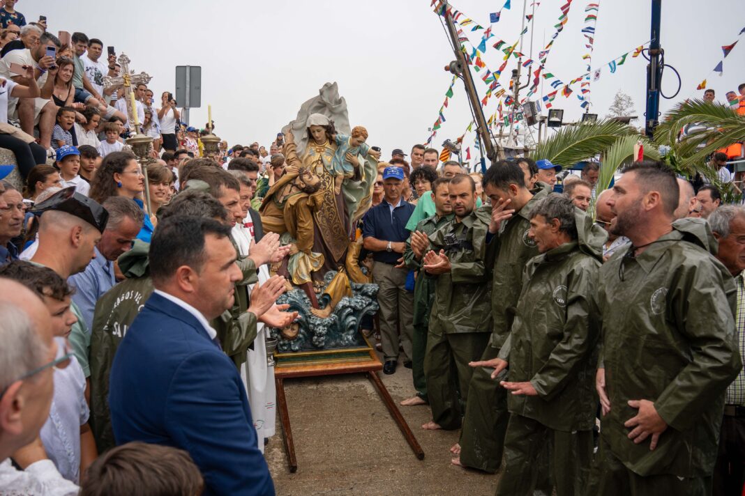 A continuación, realizouse a tradicional danza de arcos e, ao remate, os barcos engalanados saíron en procesión. Xa de volta, a Virxe do Carme regresou á igrexa parroquial portada nos ombros dos mariñeiros que participaron na simulación, que fan ese camiño descalzos.