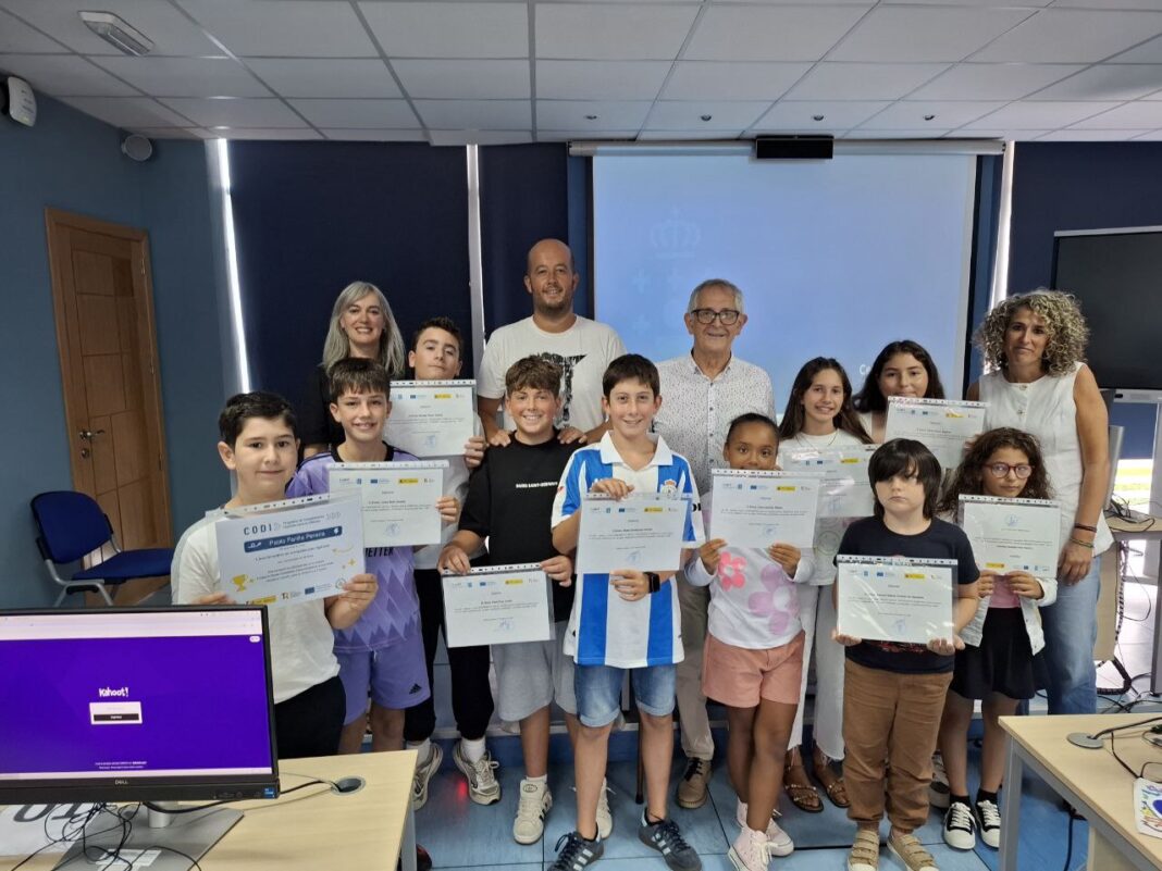 Case medio cento de nenas de nove a dezasete anos de idade participaron ao longo do verán nos campamentos dixitais organizados pola Concellaría de Innovación en colaboración coa Fundación Esplai. Hoxe rematou o cuarto. O alcalde, Evencio Ferrero; o concelleiro de Innovación, Iván Andrade, e a concelleira de Educación, Mar Eirís, ademais da técnica responsable da Aula CeMIT, Milagros Antelo, fixeron entrega dos diplomas á rapazada participante nesta última quenda.
