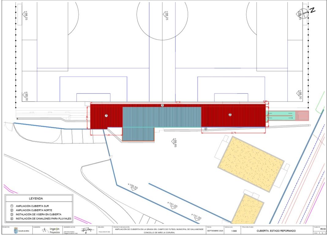 O Concello de Miño sacou a contratación o proxecto para ampliar a cuberta da bancada do campo municipal de Gallamonde, dando resposta a unha demanda da AD Miño e do público que acode a este recinto deportivo.