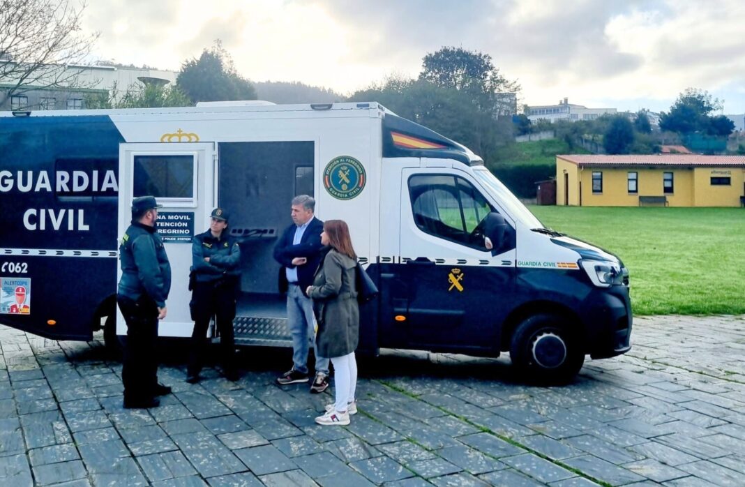 A contorna do albergue de Neda recibían hoxe a visita dunha das Oficinas Móbiles de Atención ao Peregrino (OMAP) coas que a Garda Civil contribúe a facer máis seguras as principais rutas de peregrinación a Compostela. O rexedor municipal, Ángel Alvariño, e a concelleira de Igualdade, Ángeles Puentes, achegábanse esta mañá ao Paseo de Xuvia para coñecer de primeira man o traballo que se realiza a través deste servizo de carácter itinerante.