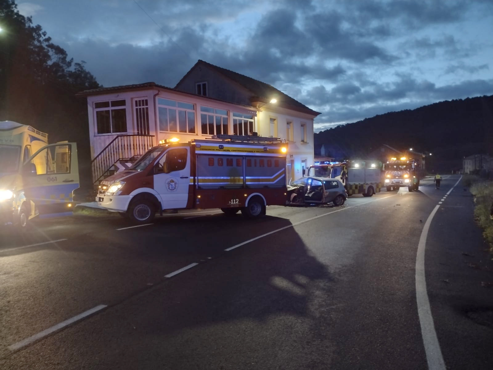 Á súa chegada ao lugar, o acompañante que viaxaba no automóbil estaba xa sendo atendido por unha das ambulancias localizadas no punto. Pola súa parte, os bombeiros procederon a realizar a excarceración do condutor xunto ao GES de Noia. Para iso, retiraron a porta e realizaron a extracción do condutor, certificando finalmente o seu falecemento.
