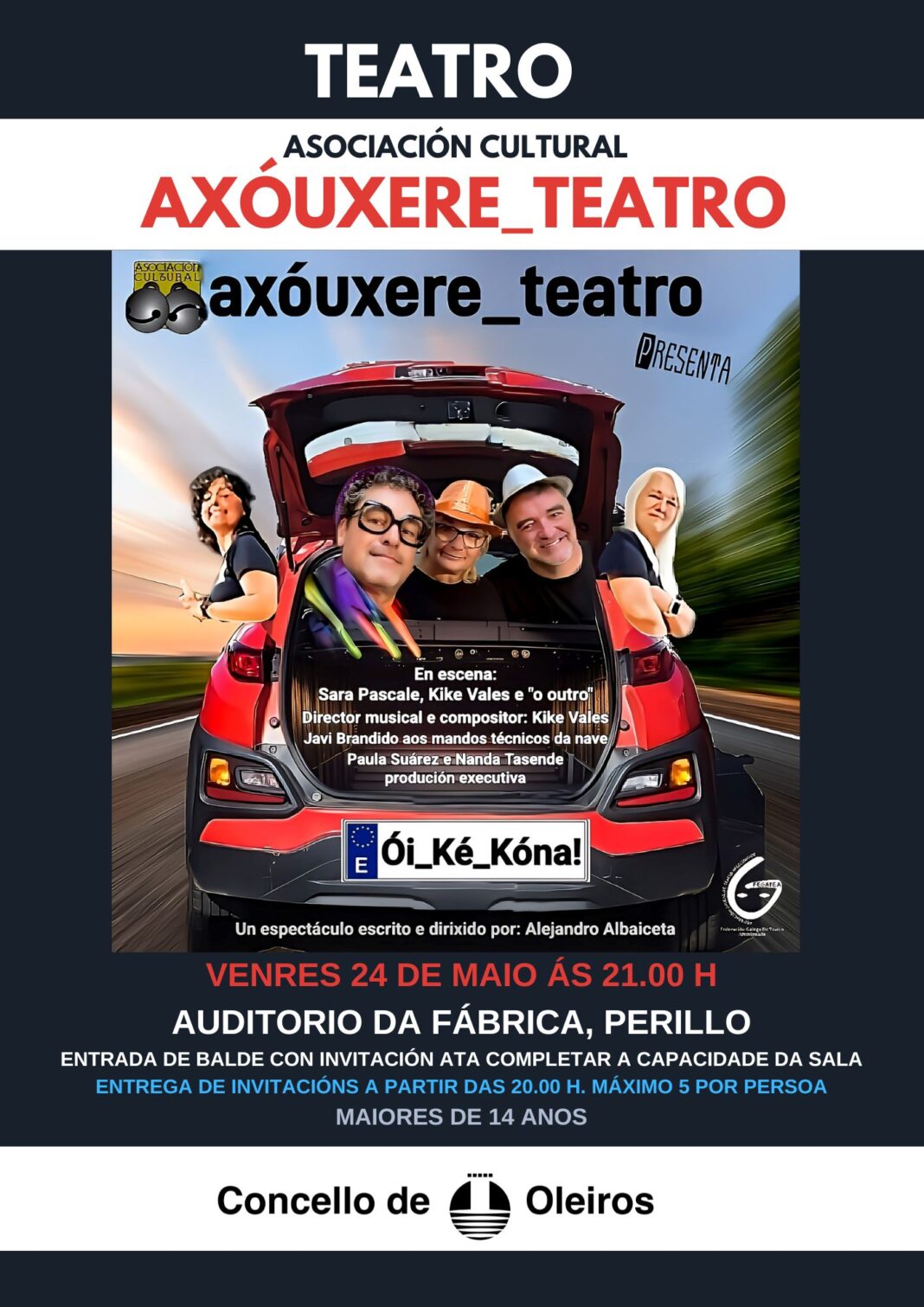 O Concello de Oleiros acolle este venres 24 de maio, ás 21:00 horas, no auditorio da Fábrica en Perillo; o espectáculo Ói_Ké_Kóna! de Axóuxere Teatro