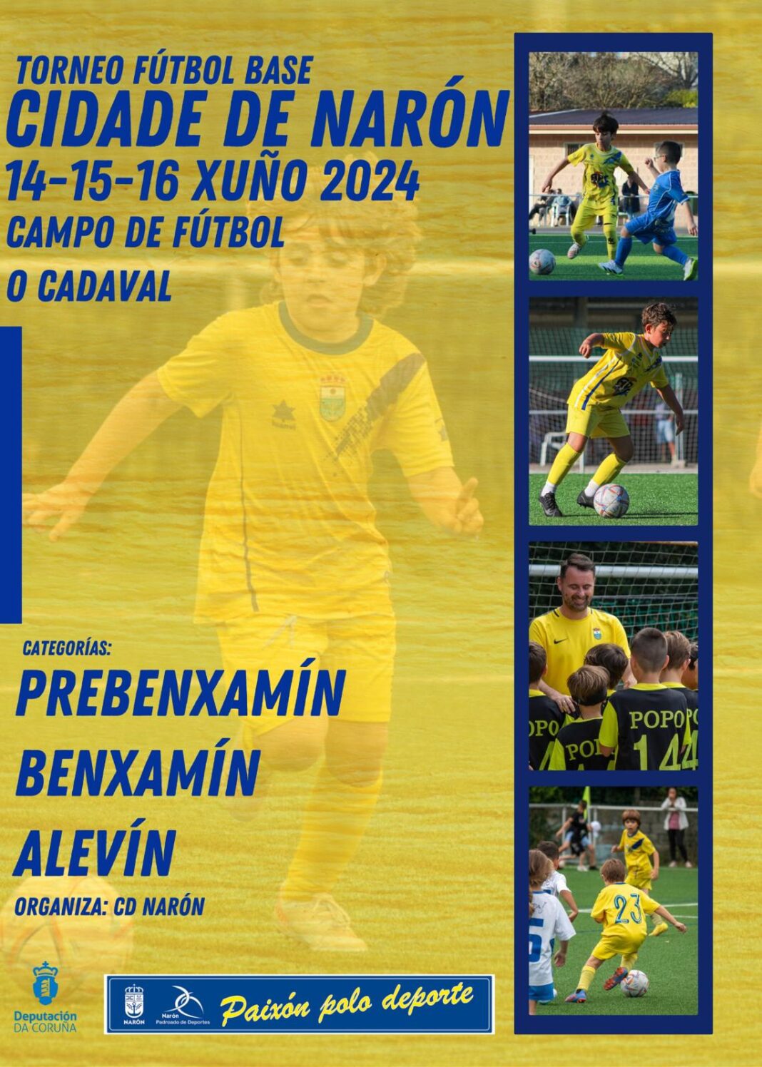 Na xornada de mañá, a partir das 16:00 horas disputaranse os partidos da categoría prebenxamín, se ben o sábado dende as 10:00 serán os de benxamíns e o domingo tamén a partir das 10:00 os de alevíns. Entre a ducia de equipos participantes da comarca, a maiores do anfitrión, o Club Deportivo Narón, participarán outros como o Narón-O Freixo, o Cidade de Narón, o As Pontes… e virán outros como o Ural, o Atlántico Coruña, o Silva, o Vilalbés…