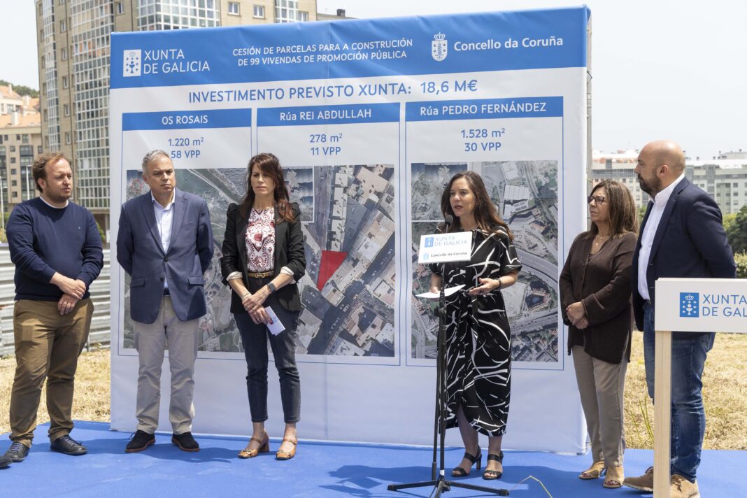 A previsión é que 58 destas vivendas se constrúan nos Rosales; outras 30 no lugar de Pedro Fernández (A Pasaxe); e unhas 11 na contorna da praza da Porticada. Todas elas, en catro parcelas de titularidade municipal que se cederán ao Instituto Galego de Vivenda e Solo (IGVS) co obxectivo de incrementar o parque residencial público na Coruña “e, desta forma, dar resposta a unha das principais necesidades das e dos coruñeses: o acceso a unha vivenda digna e asequible”, precisou Rey.