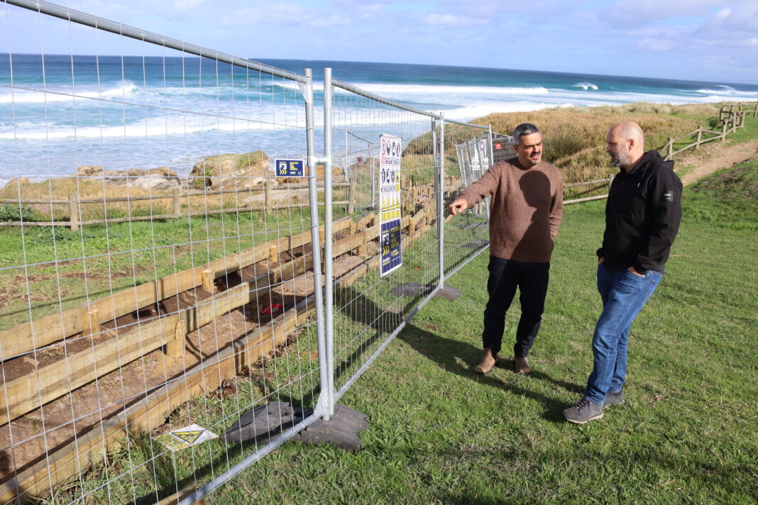 O alcalde, Daniel Pérez, e o concelleiro de Servizos, Medio Ambiente, Praias e Protección Civil, Miguel Vales, visitaron hoxe as obras, que executa a empresa Jardinería Arce. Na praia de Razo, ademais da instalación das novas pasarelas, construirase un novo miradoiro, de 6,50 x 2,50 metros, coa súa varanda correspondente.