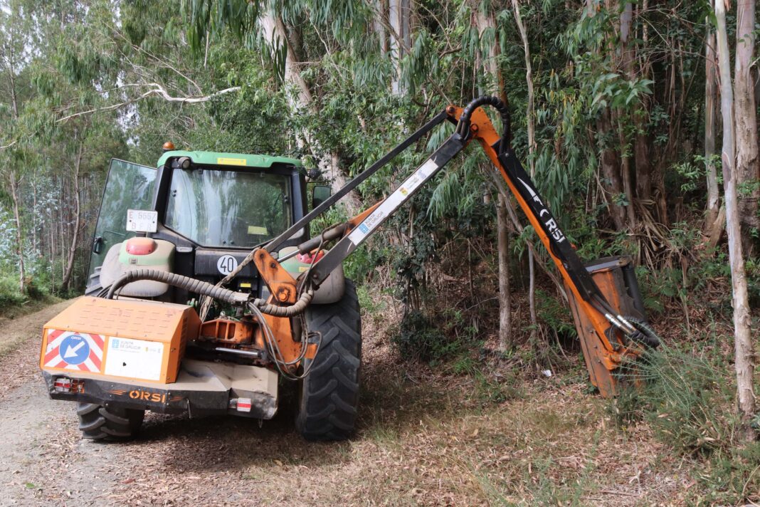 Dous tractores traballan para rematar a roza de 120 quilómetros de pistas de monte a mediados de setembro