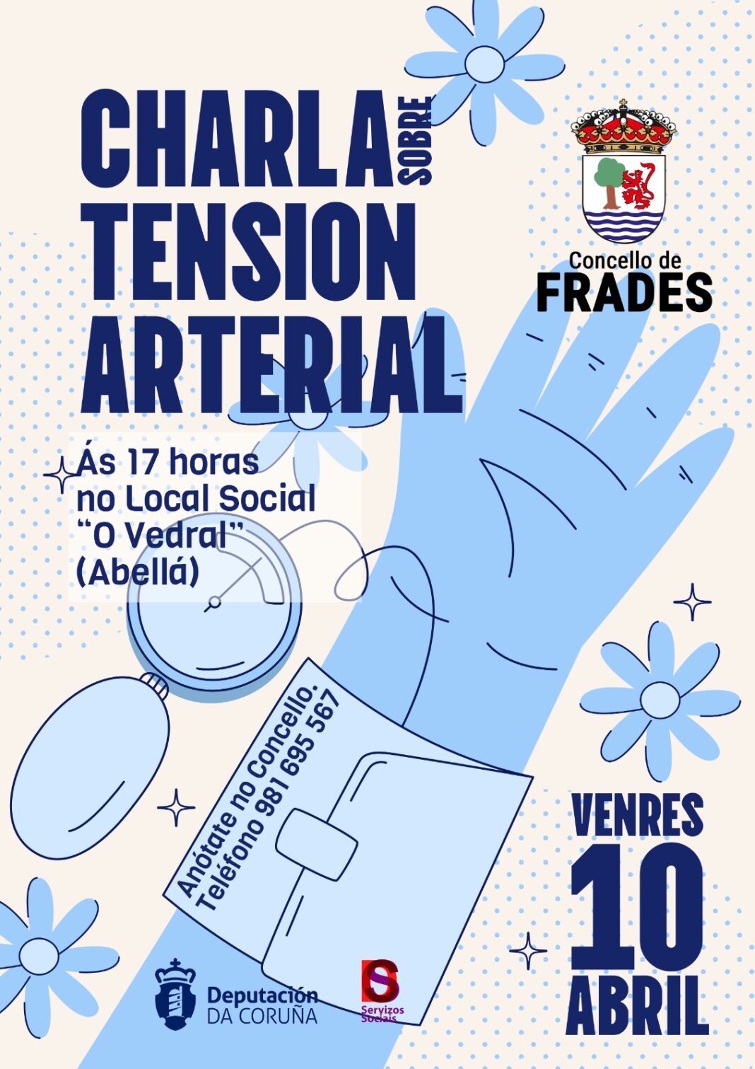 O Concello de Frades retoma o seu programa de xornadas gratuítas sobre a saúde, postas en marcha en xullo de 2024 e que están a rexistrar unha grande aceptación entre a veciñanza. A primeira cita deste ano 2026 terá lugar este venres 10 de abril, ás 17:00 horas, no local social “O Vedral” (Abellá) cunha charla informativa sobre tensión arterial.