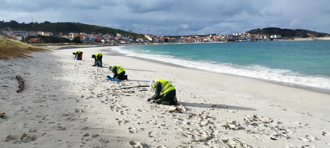 Tras a recollida realizada o pasado domingo en Traba por Protección Civil e persoas voluntarias, hoxe achegáronse ata o municipio varios efectivos de Tragsa para continuar con estes labores nas praias.