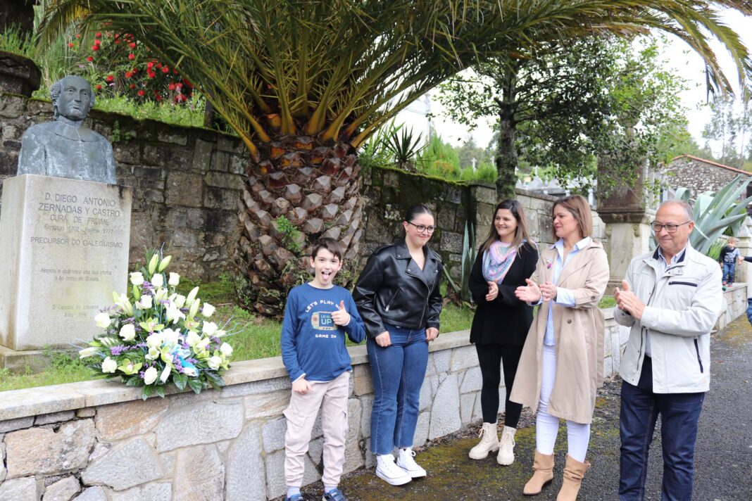 O Concello de Lousame aproveitou a tradicional ofrenda floral a Diego Antonio Zernadas de Castro para inaugurar unha exposición sobre a súa vida e obra coa que volve reivindicar que se dedique un Día das Letras Galegas ao cura de Fruíme. Medio cento de persoas acompañaron esta mañá á concelleira de Cultura, Silvia Agrafojo, durante os actos conmemorativos que tiveron lugar este mediodía no adro da Igrexa de Fruíme.
