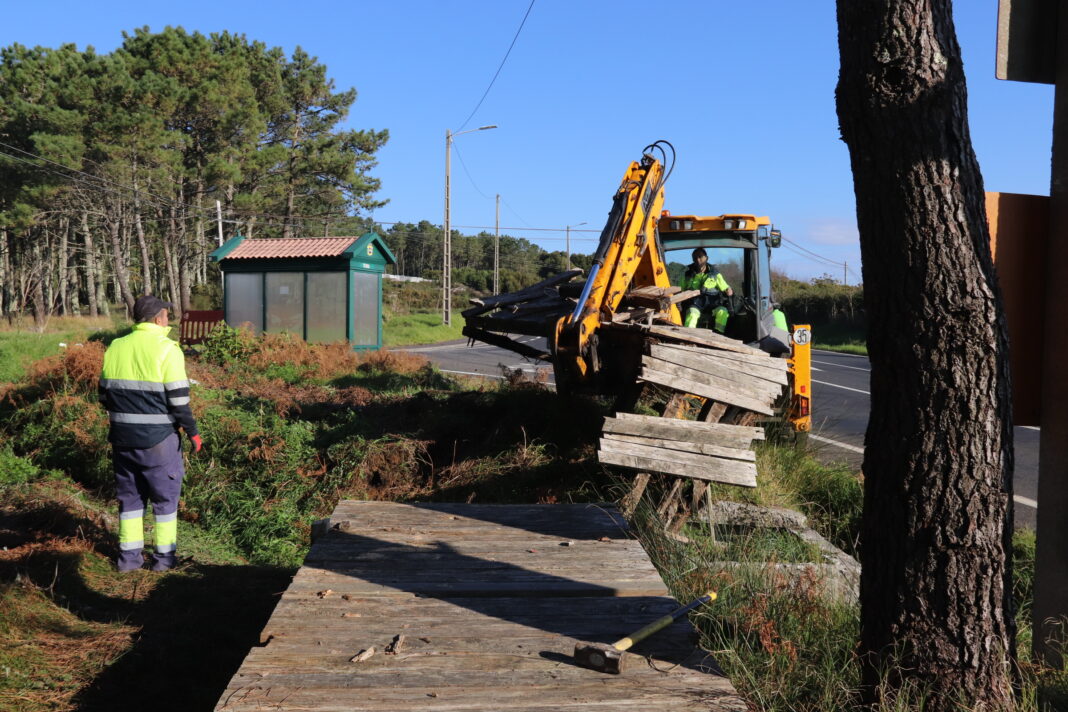 Co obxectivo de mellorar o tránsito peonil seguro no ámbito rural, o goberno ribeirense iniciou a retirada do paseo de madeira que une Teira e Corrubedo e realizará unha senda peonil que garanta a mobilidade segura e cunha opción que sexa duradeira no tempo a nivel de mantemento.