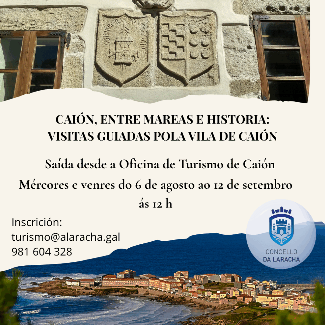 A segunda proposta leva por título Caión, entre mareas e historia consistente nun percorrido cultural guiado pola vila no que descubrir os lugares e puntos de interese máis destacados. A visita comeza na Oficina de Turismo, situada na antiga casa reitoral, e remata cunha parada no museo do Arquivo da Pesca, un espazo que permite coñecer de preto a historia e tradición mariñeira da localidade. Este roteiro celebrarase todos os mércores e venres entre o 6 de agosto e o 12 de setembro, con saída ás 12:00 h.