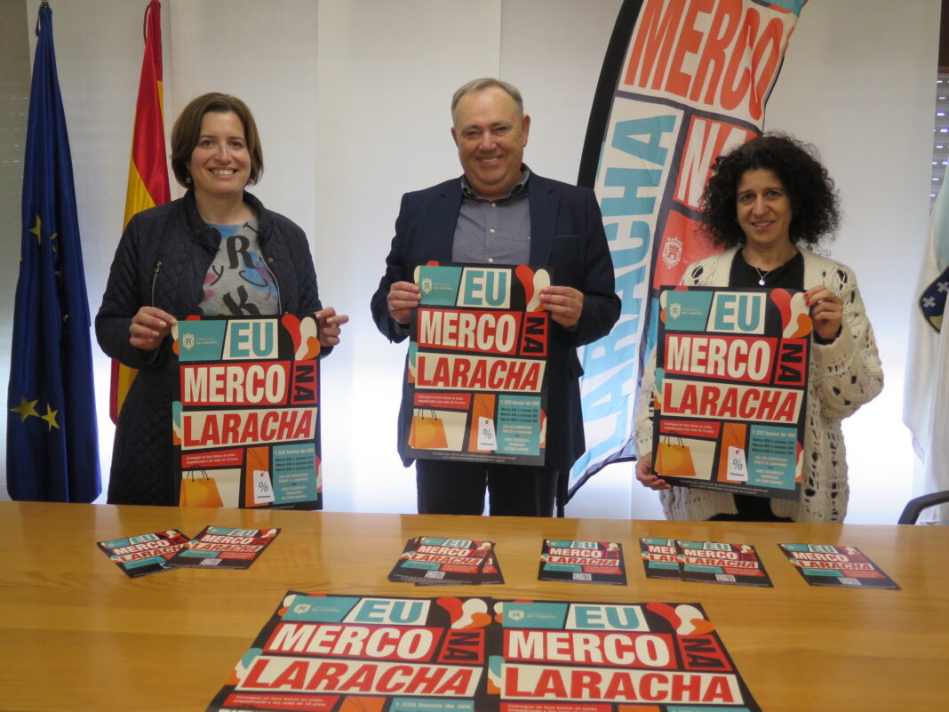 O alcalde, José Manuel López Varela, e a concelleira de Promoción Económica, Rocío López, xunto á axente de emprego e desenvolvemento local, presentaron hoxe a iniciativa á que o Concello vai destinar 40.000 euros. Consistirá nunha campaña de bonos que se porán a disposición da cidadanía larachesa para empregar nos establecementos e servizos adheridos, subvencionando deste xeito as compras desde o Concello. Así, fortaleceranse os negocios locais e fomentarase o consumo de proximidade nos sectores comerciais, hostaleiro, cultural, educativo, salóns de peiteado e beleza, taxis, etc.