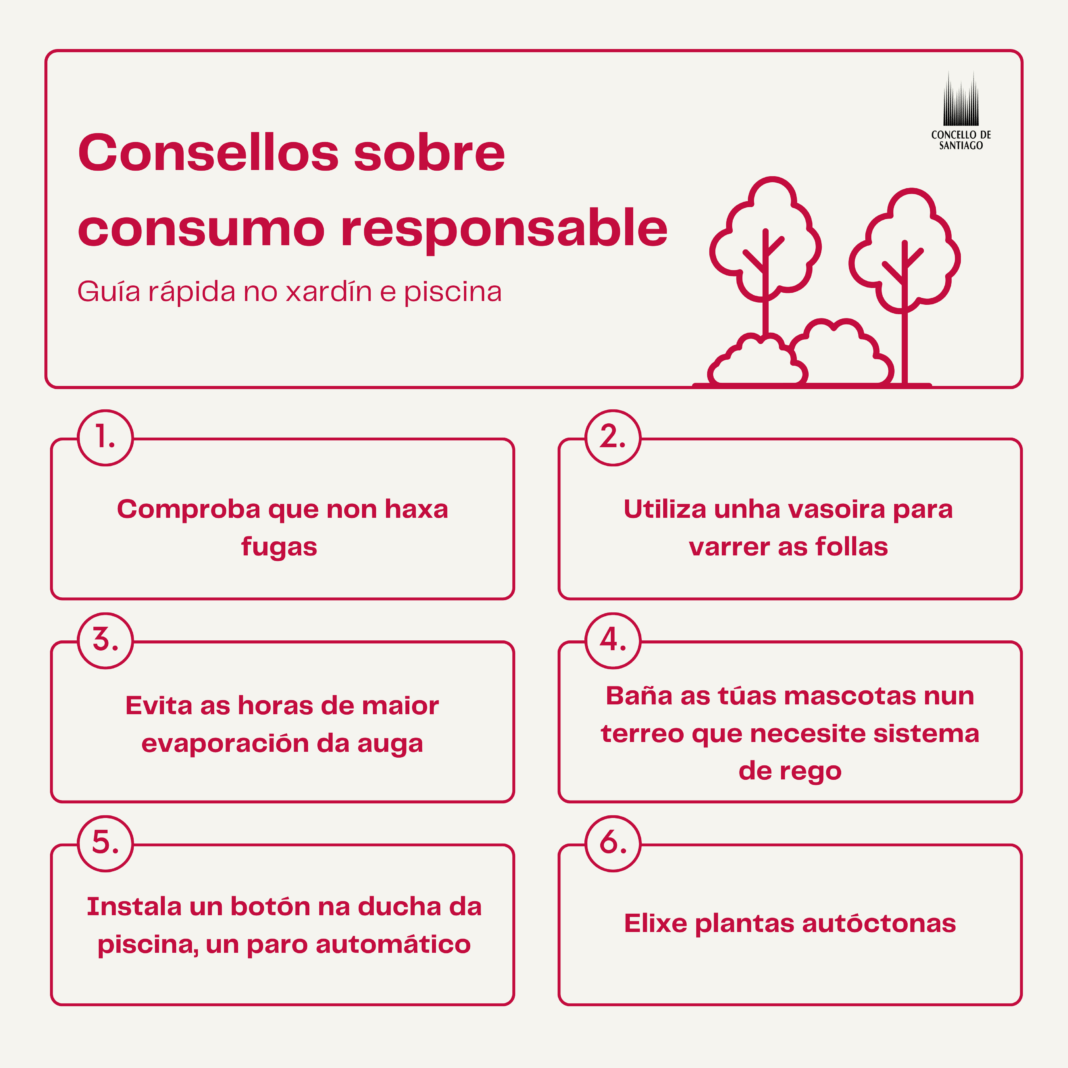 Ante esta situación, o Concello está a minimizar os consumos municipais de auga non esenciais -aínda que este tipo de consumos representa tan só o 10% do total-, e volve apelar á cidadanía para que faga un consumo responsable e racional de auga. Tamén insta ás empresas e industrias a reducir ao mínimo imprescindible o consumo de auga da rede municipal.